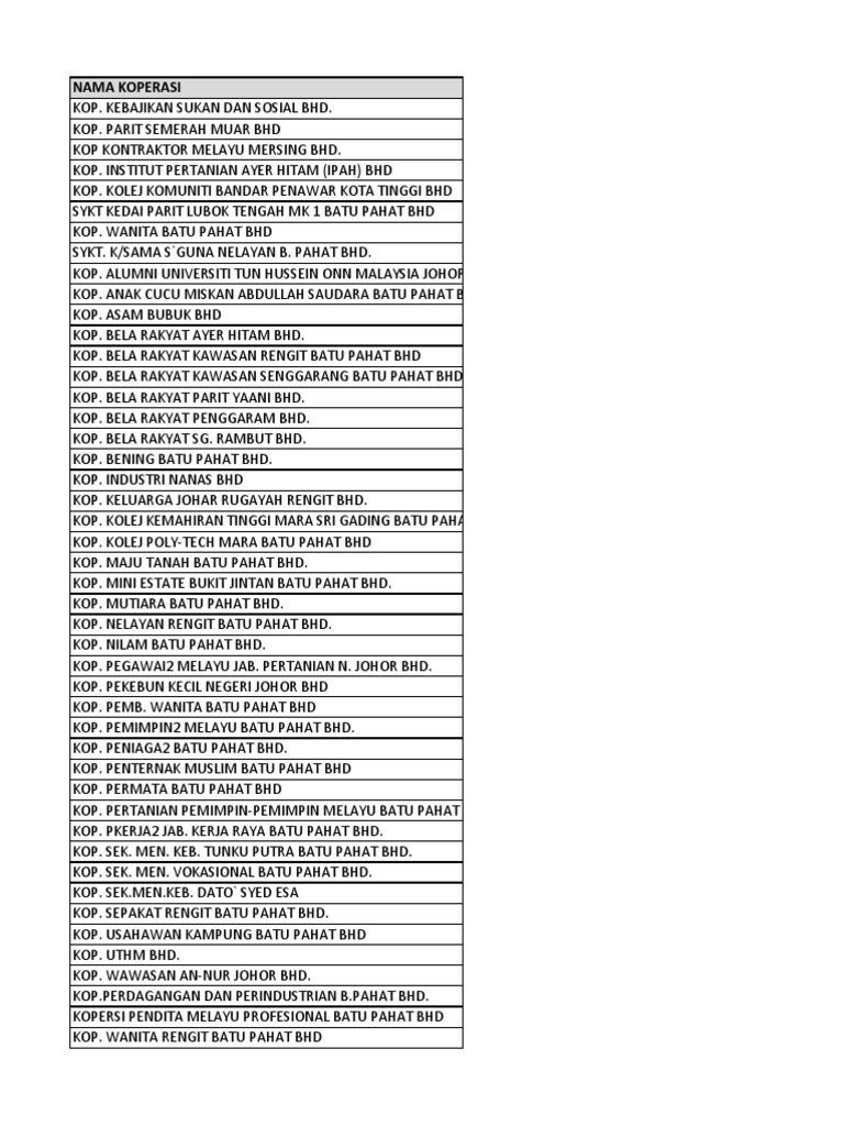 Senarai Koperasi Di Malaysia 2012 Pdf